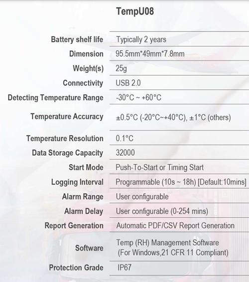 - 8Data logger สำหรับห้องเย็นขนส่งใช้ได้ครั้งเดียว(ทิ้ง)